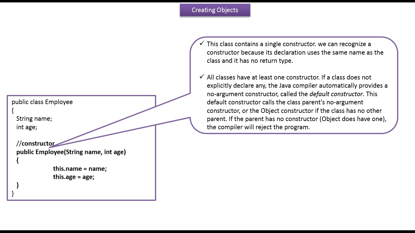 public class Employee { String name; int age; public Employee(String name, int age) { this.name = name; this.age = age; } }