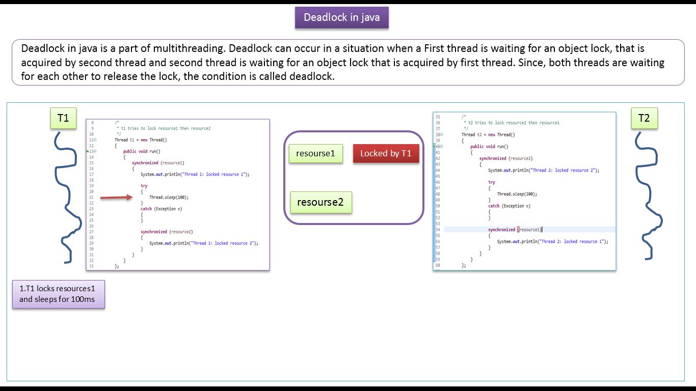 Thread 1: locked resource 1 Thread 2: locked resource 2Click the below link to download the code: