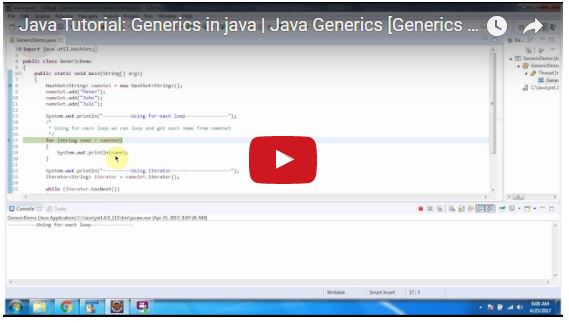 import java.util.HashSet; import java.util.Iterator; public class GenericDemo { public static void main(String[] args) { HashSet<String> nameSet = new HashSet<String>(); nameSet.add("Peter"); nameSet.add("John"); nameSet.add("Juli"); System.out.println("----------Using for-each loop---------------"); /* * Using for-each loop we can loop and get each name from nameSet */ for (String name : nameSet) { System.out.println(name); } System.out.println("----------Using Iterator---------------------"); Iterator<String> iterator = nameSet.iterator(); while (iterator.hasNext()) { String name = iterator.next(); System.out.println(name); } } }Output