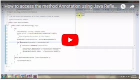 import java.lang.annotation.ElementType; import java.lang.annotation.Retention; import java.lang.annotation.RetentionPolicy; import java.lang.annotation.Target; @Retention(RetentionPolicy.RUNTIME) @Target(ElementType.METHOD) @interface MyAnnotation { public String name(); public String value(); } public class Display { @MyAnnotation(name = "Country", value = "India") public void doSomething() { } }ReflectionDemo1.java