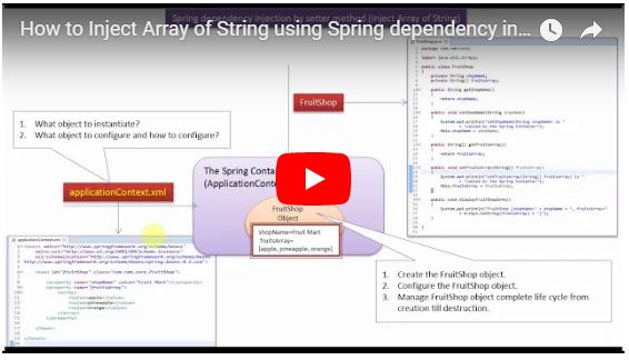| How to Inject Array of String using Spring dependency injection by Setter method? | Spring Tutorial |